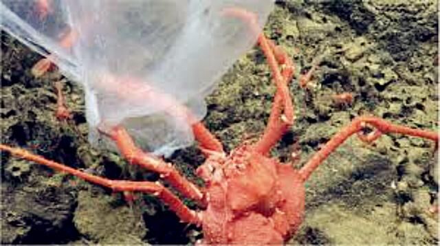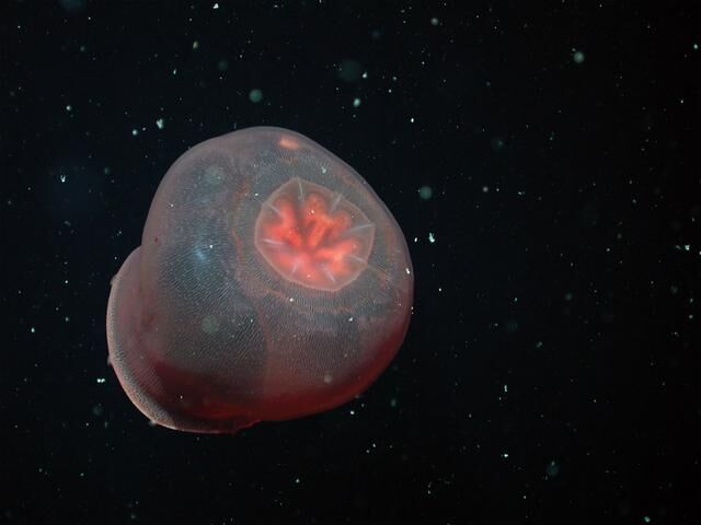 科学家表示,此次使用这种水下采集器拍摄的时候,在海底的珊瑚林里面,神奇的拍摄到了这种水母死亡之后,一只螃蟹在这只死亡的水母上面嬉戏的镜头,这种水母在死后看起来就像是一坨果冻,而且它的周围有很多的小螃蟹,在这种深海之中食物是相对匮乏的,所以当水母去世之后会有很多的动物不断的来蚕食它们的身体,以此来填饱自己的肚子。