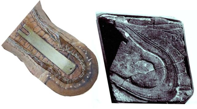 (图为对于脚印另一部分的猜测)那么在2亿年前,那个时候是两栖动物的天下,根据现在人类对于生物进化和地球演化历史的考察,人类根本不可能在那个时期出现。不要说是人类了,即便是古猿在那个的时候也没有。那么这些脚印究竟是怎么回事呢?为什么在那样一个时间点会清晰的留下这种人类的脚印?难道说在那个时期,人类其实已经出现在地球上,难道地球上曾经先后出现好几批不同的人类?当然对于这个脚印的存在有很多科研学者也持着怀疑的状态,因为根据演化的历史,人类出现在那个时期很显然不符合现在科学的常理性推测。自然的力量是神奇的,自然界中很多的岩石,在经过长久的风化后可能形成许多奇怪的形状,那么这个神奇的脚印是否也是大自然所创造的呢?对于这一个观点,许多地质学家认为这是很有可能存在的,而且这个脚印并不是全部的印记,只有一部分,对于其另一部分的形状还是有很多的猜测。