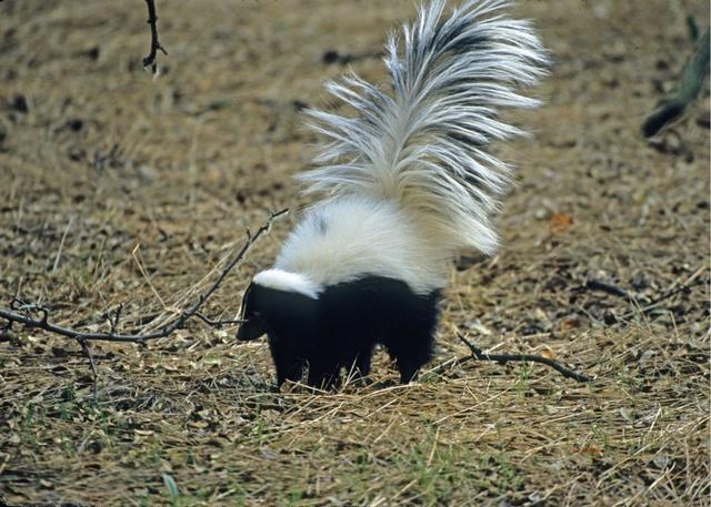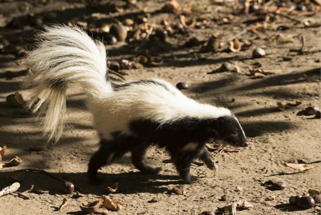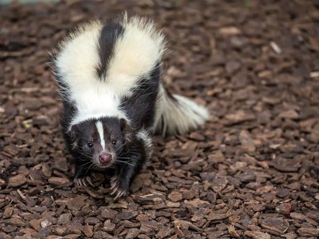 其实大家如果没有看到这种小动物,只是看图片的话会感觉其实这种小动物真的是非常的可爱,给人的感觉就像是小松鼠一般,而且它的皮毛也是非常的柔顺光亮,一般来说是黑毛跟白毛相融合的,但是大家如果遇到这种小动物的话,那还真的是无法喜欢它,因为这种小动物确实是非常的臭。在它们的肛门处有两个大的臭腺,所以散发出来的这种味道特别的难闻,所以隔着很远,其实就能够发现这种小动物的存在,不过它一般白天的时候是不会出来活动,基本上是在洞穴里面睡觉,到晚上才会出来活动找食物之类的,它的这种奇臭无比的味道,其实也成为了它的保命的功能,在它遇到危险的时候,它都会通过释放这种臭味道来保命,获得逃生的机会。当它遇到危险,都会特意的竖起自己的尾巴,然后用前爪跺地,这样其实就是警告敌人,千万不要靠它太近,如果敌人靠得太近,想要袭击它的时候,那么它就会毫不犹豫的转过身来,将自己的这个特别臭的液体会释放出来。尤其是距离比较近,在三米到四米左右的时候,一般来说是能够击中目标的,当这些液体击中了目标之后,那么被击中的动物往往就会失去视觉以及嗅觉等等。而这种强烈的味道,不光是在这短暂的几米内发挥着重要的作用,甚至在800米左右都能够闻到。