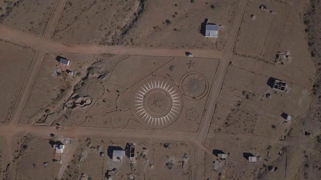 要知道沙漠里面基本上是不会有任何的建筑物,毕竟沙漠非常的干燥,而且气候相当的恶劣,在这里不管建造什么东西好像都不能够居住,不过在阿根廷的这个地方却出现了一个非常奇怪的建筑,当然这个建筑并不是用来居住的,之所以说它奇怪主要是因为这个建筑的模样跟我们平时所看到的建筑完全不一样,看起来是有规律的,但是好像又看不出究竟有什么作用。而这个奇怪的建筑物,其实是当地的一名男子建造的,据这名男子介绍,他之所以会建造这个特殊的建筑物,是因为它受到了外星人的安排,外星人让他在这里建造这样的一个奇怪的建筑物,并且他自己也表示,在未来他会前往这个地方去寻找外星人,而且听他说的有理有据,好像是跟真的一样。这个奇怪的建筑物是一个圆形,直径大概是有一百米左右,使用白色的岩石堆积而成的,不过中间是两个套圆,四周有一些星形的长条,整个看起来就像是一轮太阳,发出金灿灿的光,射向四面八方,而且在中心点还有一个12角不规则的星星,从高空拍摄到的图案,看起来挺唯美的,不过这个图案究竟有什么作用?就这个建造的人介绍,这是他帮助外星人建造的一个地球上的UFO机场。