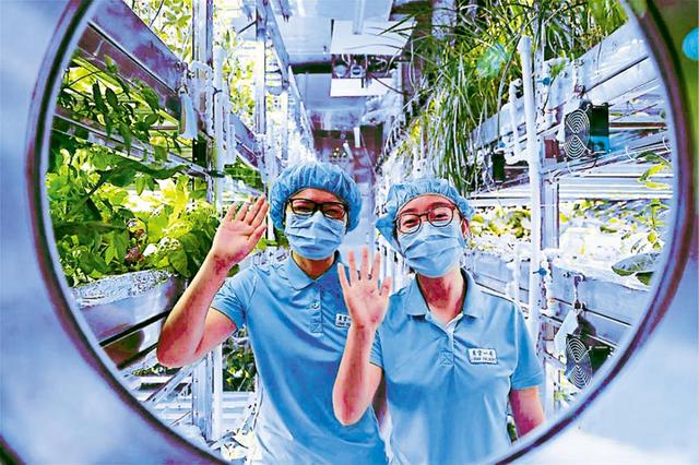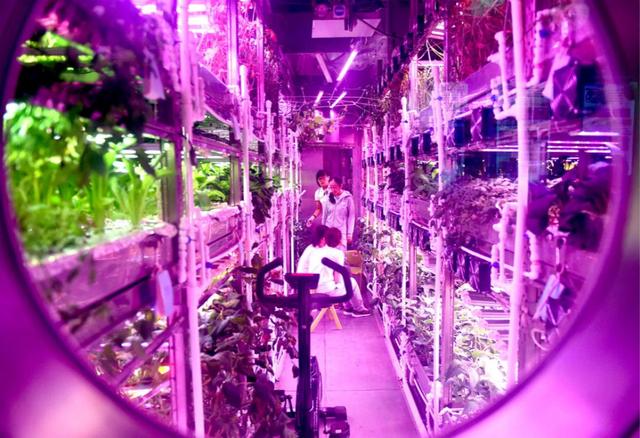 而这些植物舱里面是需要光根据植物的生长状况来进行不断的调节,这是一种人造的光源,这种光源能够控制植物的生长速率,保证实验舱里面氧气的含量。