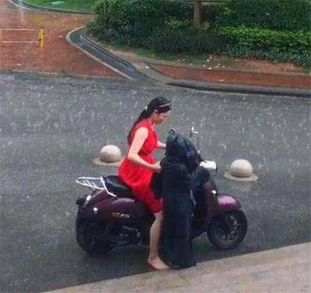 于是这位妈妈顾不了那么多,冒着大雨骑着电动车往学校赶。从图片可以看出来,当时雨下得很大很急,雨打在身上很疼,但是妈妈顾不了那么多,她的心里就只有孩子。她赶到学校的时候,儿子正在哭着要妈妈,儿子的书包里有一件备用雨衣。老师建议她穿上,然后让孩子钻进去。