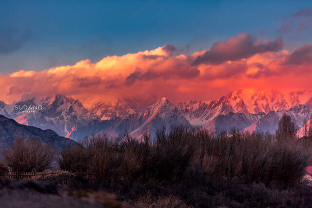 同青藏高原一样,帕米尔高原也有“世界屋脊”一说,其“帕米尔”在塔吉克语中就是“世界屋脊”的意思。但在人们认知和印象中,“世界屋脊”指的就是青藏高原。2019年11月末,自驾新疆帕米尔高原时,一路上所见风光和古迹让我记忆犹新,最难忘的就是在塔县(全称:塔什库尔干塔吉克自治县)的石头城遗址,看了一场帕米尔雪山的晚霞。
