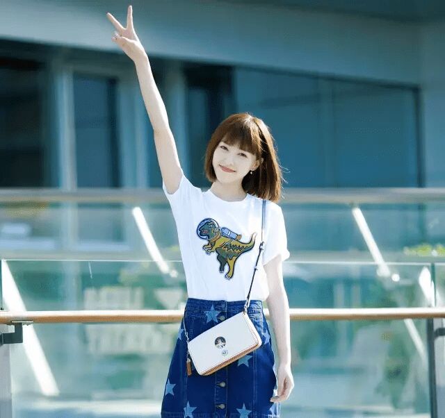 但是你以为只靠短发就可以减龄,那就小看唐嫣了,她还有一个法宝就是背带裙呀!