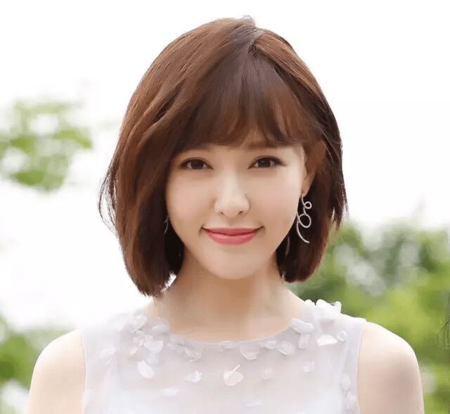 齐刘海的短发造型,一边的头发别在耳后,浅咖发色正配她琥珀瞳色,清纯可爱值满分。