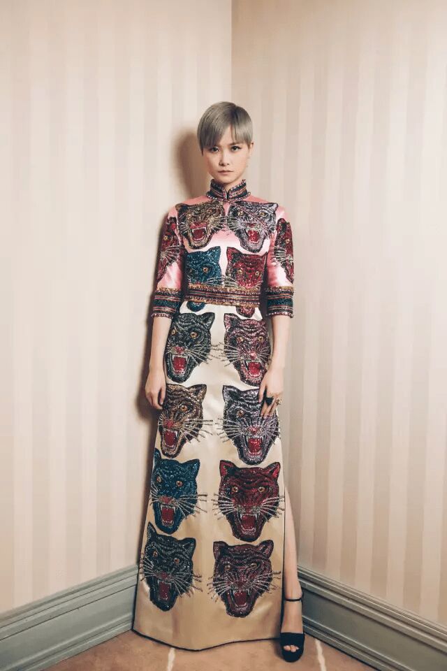 沉静又富有张力的Gucci旗袍,春春穿的很好看!
