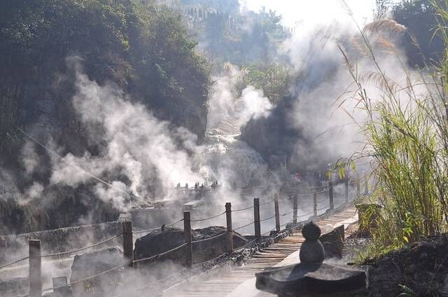 腾冲热海景区位于腾冲县城西南部清水乡,热海面积有9平方公里,有气泉,温泉群80多处,其中这里的10个温泉水温可以达到90度以上,在热海景区随处可以看到冒着热气的泉水,将整个景区笼罩在云雾当中,犹如仙境一般。