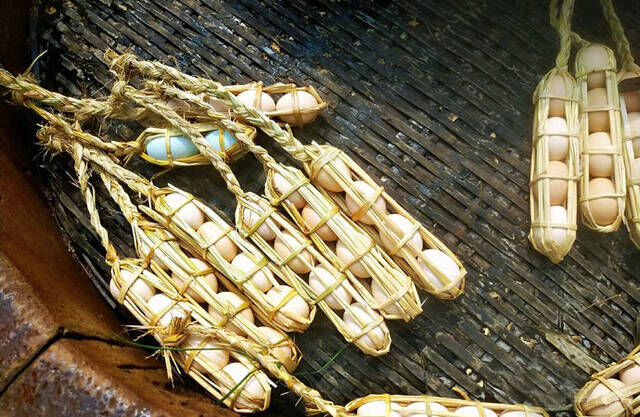 景区里面最出名的就是大滚锅了,这里也是整个景区的标志,在大滚锅的旁边有2个蒸笼,这里可以现成的蒸任何食物,其中就包括鸡蛋了,这里你能看到腾冲的特色鸡蛋串着卖,就是将鸡蛋用草绳串在一起。