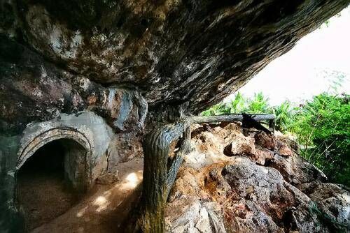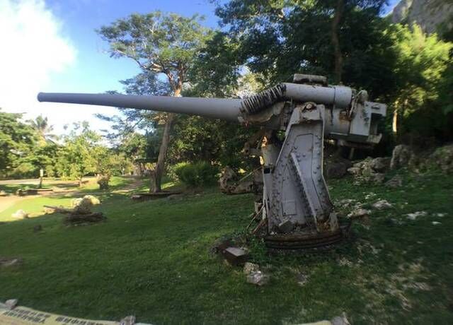 当天我们主要的游玩地点就是北边,因此建议大家住在加拉班中心地区。我们先去的是日军司令部遗址,这个地方位于自杀崖的山脚,在路过的时候也可以顺道看看自杀崖的全景,其它地方看不到。司令部遗址很隐秘,在一个很不起眼的山洞里面,这也是为了战争。洞穴里面比较阴森,当时的日军挖空了整座山,用山体当做碉堡。在司令部的周边有很多的二战装备,比如坦克等,不过都已经锈迹斑斑了。