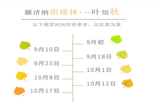 每年一到秋天额济纳的胡杨林就会是最热门的旅游景点,这个地方主要是季节性特别强,只有秋季适合旅游,其它时间都不建议去。根据以往的经验,每年的9月10日左右,就已经有开始变黄的黄叶了,9月25日的时候就有三分之一的叶子变黄了,而等到10月1日的时候就会有一半的叶子变黄,因此每年从10月1日开始,就是这里的旅游旺季,如果天气稳定,那么红叶的最佳观赏时间可以延续到10月20日,如果天气不稳定,那么最佳旅游时间就会提前,我给你的最佳旅游时间是10月7日-15日,这个时间段刚好错过了国庆节假期,而且距离黄叶末期还有好几天,是最佳的旅游时间。