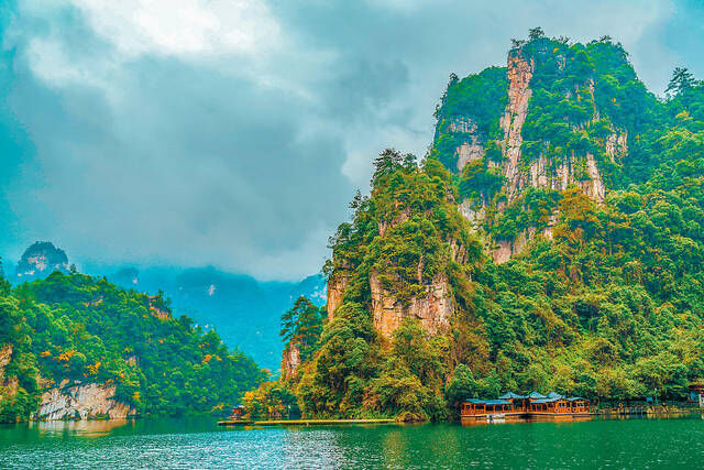 在张家界宝峰湖的名气还是比较大的,有人间瑶池的称呼,这里是因为拦峡筑坝而成的一个湖泊,湖水清澈见底,在宝峰湖的周边有宝峰飞瀑、一线天、云崖栈道、鹰窝寨、南海等知名景点。
