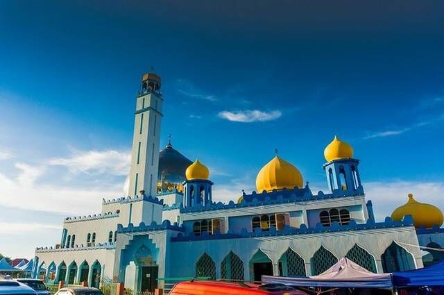 仙本那的清真寺很有西马的特色,和别的国家清真寺都有一些区别,它是黄色的洋葱头,蓝色和白色为主调的外墙设计。这个清真寺在小镇上算是一个地标性的建筑了。如果是在开斋节来这里,你会看到很多人。