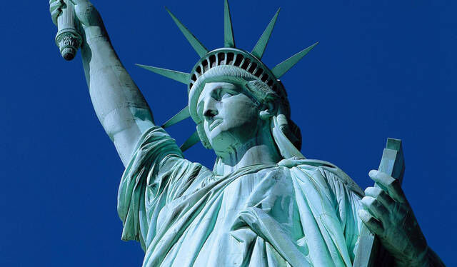 上岛之后你会看到高大的自由女神像,她的左手是独立宣言,右手是一个火炬,特别的壮观,以前他的颜色是棕黄色,后来因为海水的风化,变成了现在的绿色。