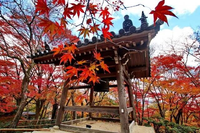 常寂光寺是京都比较小众的寺院,院子比较精致,一年四季都特别适合拍照,这里有一个观景台可以看岚山风景。这里的红枫比较出名,因此每年的赏枫时间人会比较多。