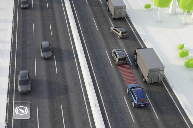 自适应巡航系统(ACC)可让司机设定行驶的速度以及和前方车辆保持的距离。随后,车辆便可自动对交通和速度变化作出回应,无需司机手动进行改变。举个例子,如果前方车辆开始减速,ACC便会相应地降低你汽车的速度,从而维持预设的距离。ACC的有效速度范围是0-95mph,因此从理论上讲,它可以让你在高速公路上一脚刹车都不用踩。