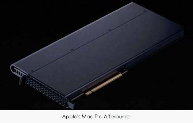 Apple Afterburner 被称作是一个电脑硬件,专门为音频,数据,图像视频进行数字处理的设备。其实就是最新的显卡技术。