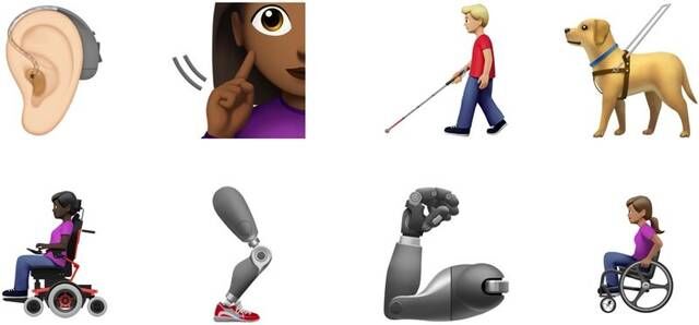 除了性别以外,还将能够选择任意肤色组合,使用个性化的牵手人物,表现超过 75 种可能的组合。新的表情符号包括导盲犬、戴助听器的耳朵、轮椅以及义肢手臂和腿的符号。、