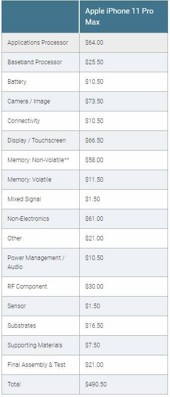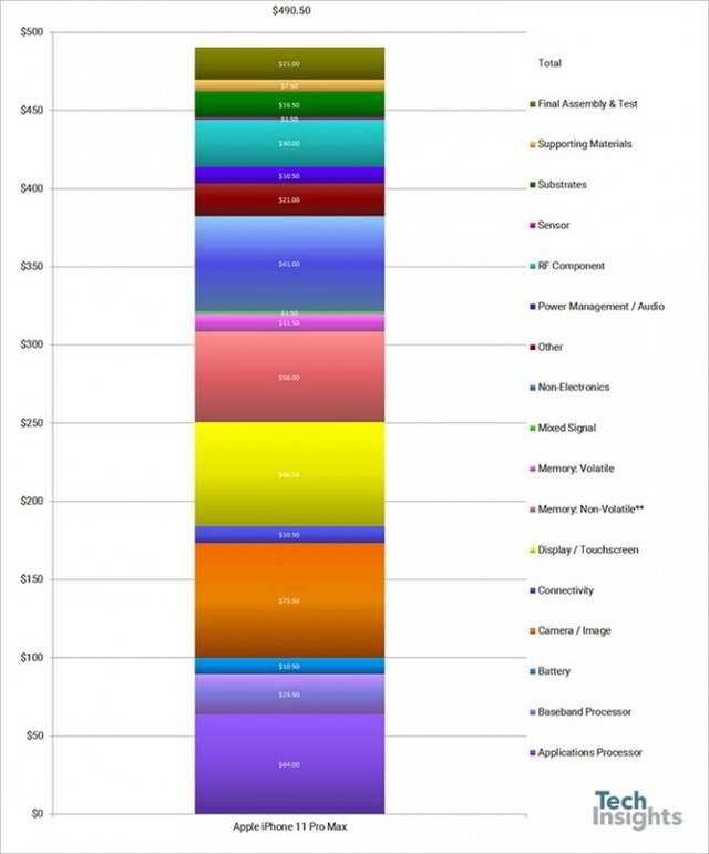 Techinsights 网站近日对苹果最新发布的 iPhone 11 Pro Max 进行拆解与分析,发现一部512G的手机元器件成本只要售价的三分之一。