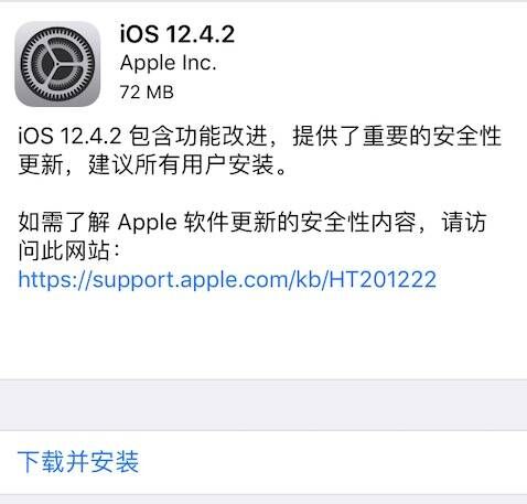 iOS 12.4.2 包含功能改进,提供了重要的安全性更新,建议所有用户安装。