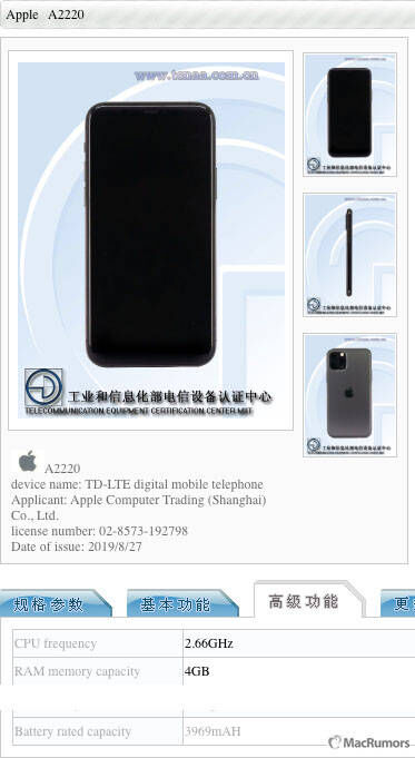 iPhone 11、iPhone 11 Pro 和 iPhone 11 Pro Max 发布后,设备的运行内存一直没有确认下周来。今天,根据中国工业和信息化部电信设备认证中心网站, iPhone 11、iPhone 11 Pro 和 iPhone 11 Pro Max 都使 4GB 运行内存。详细内存与电池数据: