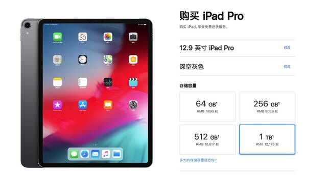 国行 11 寸 1TB iPad Pro 现在的价格为 10618 元 RMB,12.9 寸 1TB iPad Pro 价格为 12175 元 RMB。