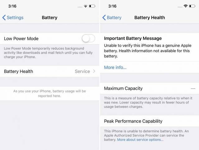 去年,我们推出了一项新功能,如果我们无法验证“通过认证的技术人员按照苹果维修流程安装了新的正品电池时”。会向顾客提供信息。 这些信息有助于保护我们的客户免受损坏,质量差或废旧电池的影响,从而导致安全或性能问题。 此通知不会影响客户在未经授权的维修后使用手机的能力。