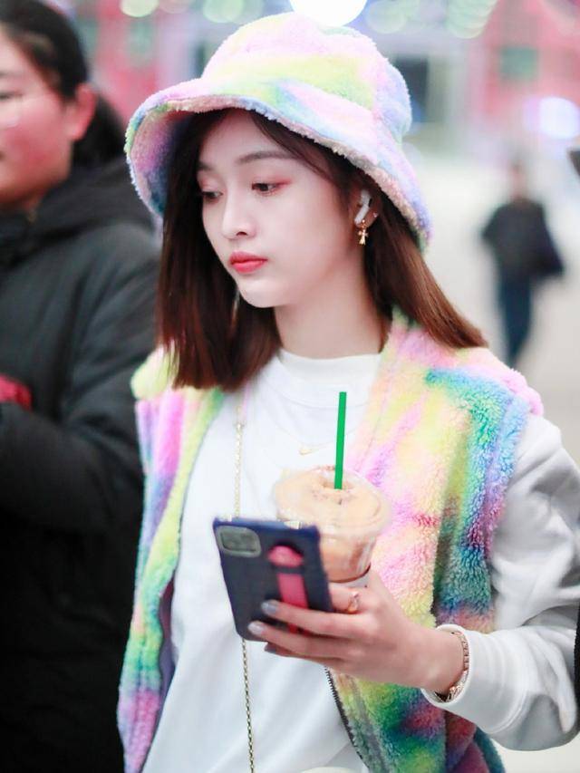 近日,吴宣仪在北京机场现身,身穿彩虹色马甲搭配同色帽子显得青春靓丽,包挂小熊玩偶更是凸显童心,手捧奶茶笑容甜美,少女气息爆棚!