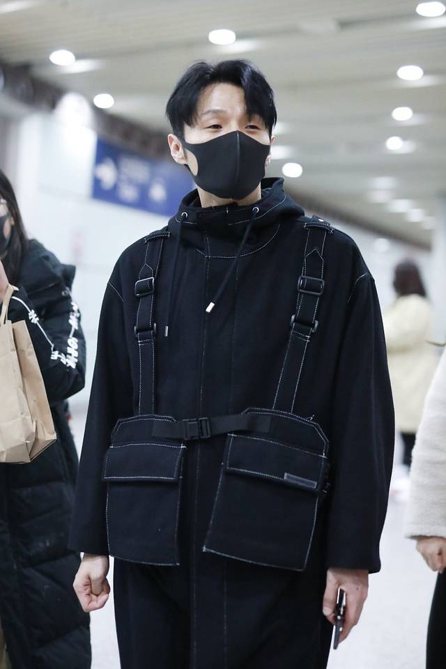 近日,气温大幅度下降的北京,李荣浩全黑look现身机场,他这次就是选择了工装风格穿搭,整个人酷酷的。他带着黑色口罩遮面。身穿一件超长款黑色连帽大衣,大衣是经典的工装风设计,多种酷帅元素融合到毛呢大衣里个性十足,搭配一条黑色小脚裤,非常不畏严寒的漏出了脚脖,太抗冻了!