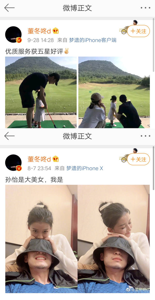 虽然还是会在娱乐圈中活跃,但她与董子健两人更多的重心还是偏向了家庭,时不时能在微博上看到有趣的互动,两人带着娃出门打高尔夫,或者是日常夸老婆,他的微博里除了工作最多的就是孙怡和女儿家庭,两人甜蜜的生活也算得上是年轻夫妻中的模范了。