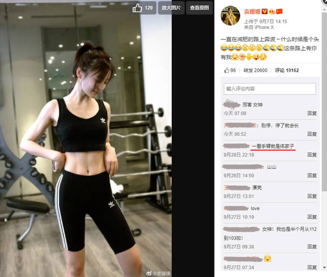 而到现在健身似乎已经成为了她的日常,在她的微博里也能经常见到她的健身房美照,图中的她腰肢纤细,双臂线条也是若隐若现,还收到了不少网友的一致好评,甚至还有网友打趣道:一看就是个练家子。