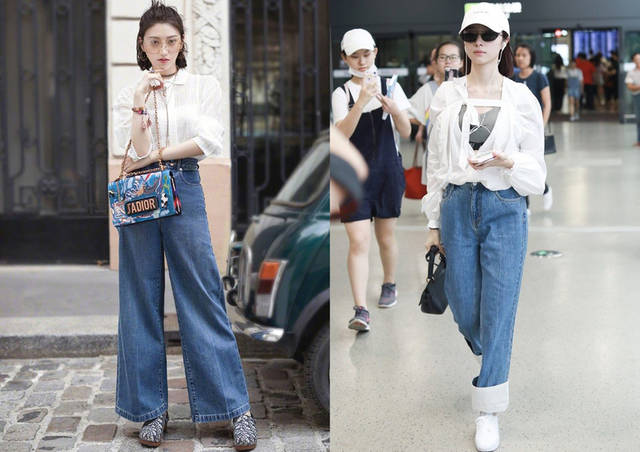 ♦简单的两种色调选搭,浅蓝色裤装和黑色上衣搭配,白色上衣和深蓝裤装搭配,对于小个子的小仙女来说,高腰牛仔阔腿裤是推荐主选,简约款上衣的腰部细节变化,整体风格休闲气质穿搭,其中衬衣的V领秀锁骨,修型穿搭。