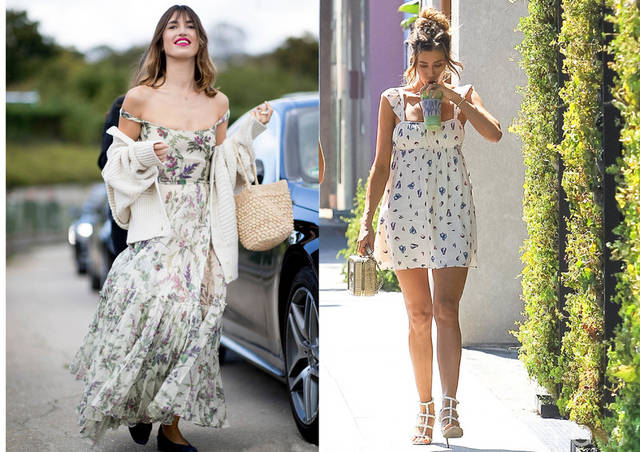 ♦简约的色调是推荐搭配组合,整体色调搭配简单,白色碎花吊带连衣裙的造型,想要田园风,那么草编包包是推荐选择。或者是选择短款印花连衣裙,印花的颜色多以冷色调,在选择包包和鞋子的配色时,多种彩色轻松搭配。
