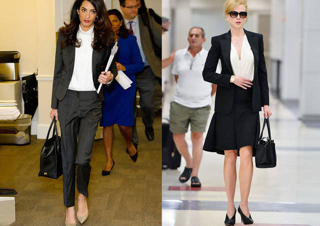 ♦日常简单的搭配组合,白色衬衣和黑色西裤,还有和黑色短裙搭配,选搭黑色小西装外套,黑色的手包和黑色挎包,通勤装的标准款式和色调选择,气质出街选择黑色或者浅色高跟鞋搭配,白色衬衣可以换成浅色调。