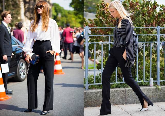 ♦对于身材苗条的小仙女,在选择的时候,白色衬衣和黑色裤装搭配,高腰的款式选择,包包推荐多种色调穿搭。气质的款式穿搭,还有就是黑色条纹衬衣和黑色裤装的搭配,选择白色的小挎包和高跟鞋组合。