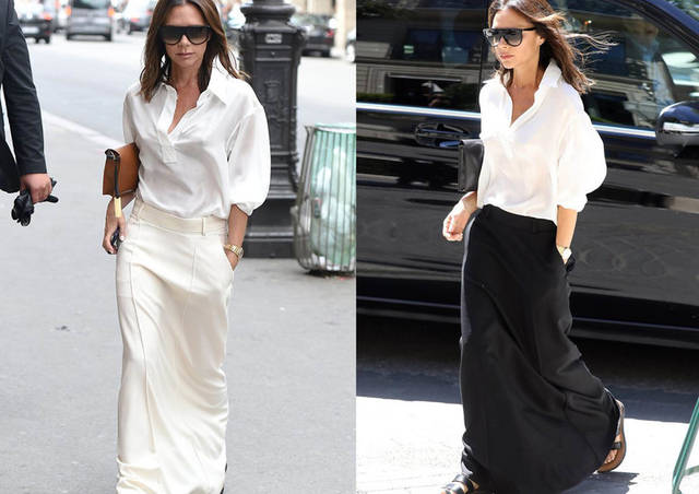 ♦日常选择白色上衣时,简约的款式选搭,和裙装组合的时候,整体简单款式组合,白色上衣和白色半裙,或者是的选择白色上衣和黑色半裙,两种简单的色调搭配,那么选择包包和鞋子的时候,夏季颜色多偏向冷色,其中卡其或者是驼色推荐选择。