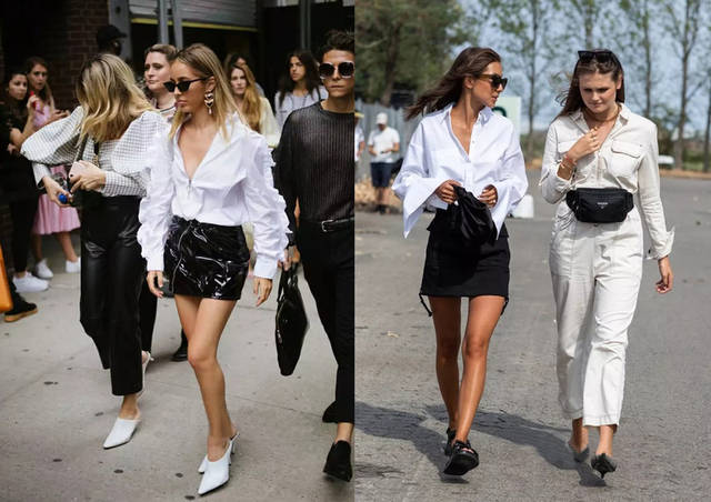 ♦要说白衬衣基础的款式选择,那么基础夸张袖是最简单的细节款,日常出街选搭黑色半裙,休闲的通勤装搭配。还有就是白衬衣的袖部波浪装饰,选搭黑色短裙和白色鞋子,整体穿搭一样偏少女范的搭配,细节元素决定风格变化。