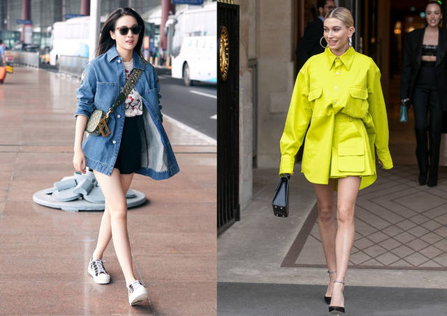 ♦牛仔款衬衣也是日常重点推荐的款式,不管是选搭黑色短裤还是长裤,都让你无忧的穿搭。还有就是彩色的衬衣款式,可以大胆尝试黄色调(如上图二中),一件长款衬衣就能帮你塑造整体穿搭,亮彩色的配色多选择黑色。