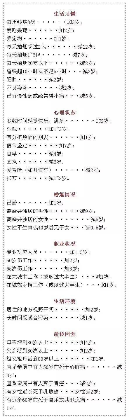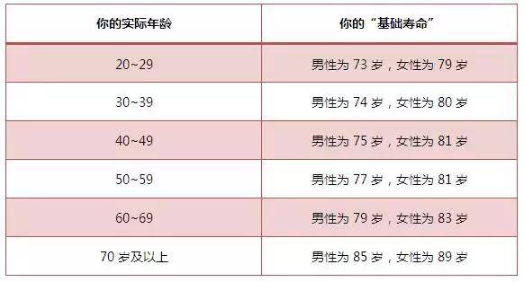 请在下表中查到自己的“基础寿命”