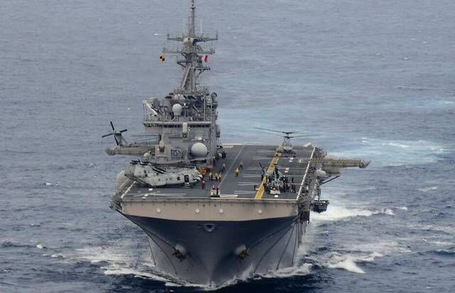 难道美国也与日本一样,存在隐藏“航母”定位的行为近日,美国海军发布消息表示,称美军的“美利坚”号两栖攻击舰,首次实现了F-35B垂直起降的目标,12架新型F-35B隐形战机垂直起降在“美利坚”号两栖攻击舰上。