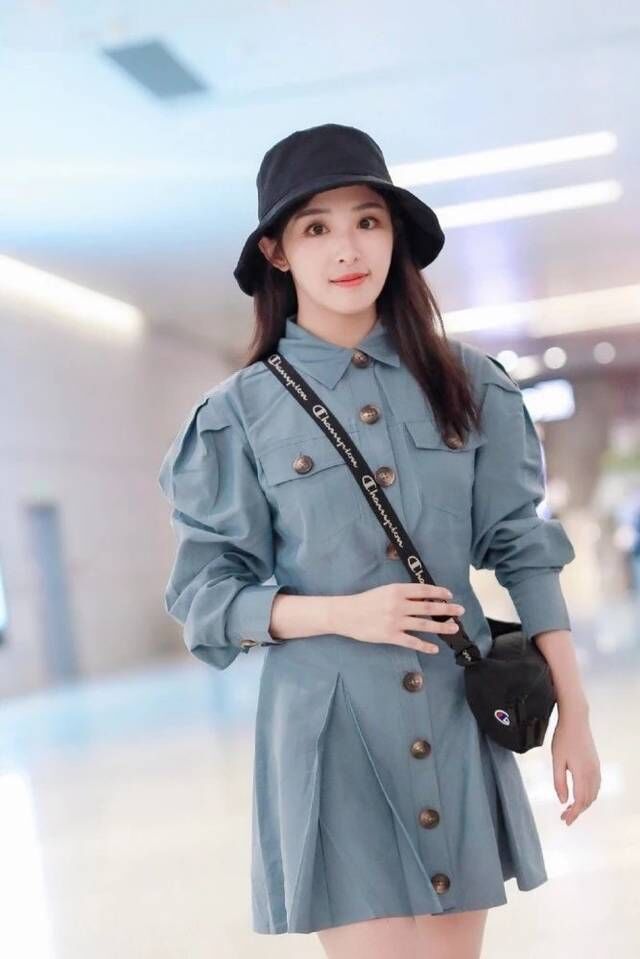 张含韵这身look很显清新范儿,蓝色的连衣裙不仅有小女人的甜美,还特别显气质清新,给人一种像是校园女神的感觉。这款衬衫连衣裙确实很适合她,虽说包裹得严严实实,但也很显身材,收腰设计显蛮腰纤细,褶皱裙摆显腿细腿长,让整个人的状态看起来特别显瘦显高,搭配一双白色的板鞋更是清纯范十足,完全就是18岁girl了。