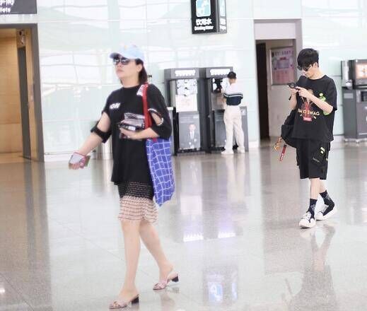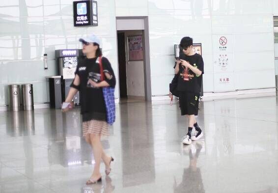 在机场两个人的现身,不过有趣的是,两个人一前一后,完全没有走到一起。
