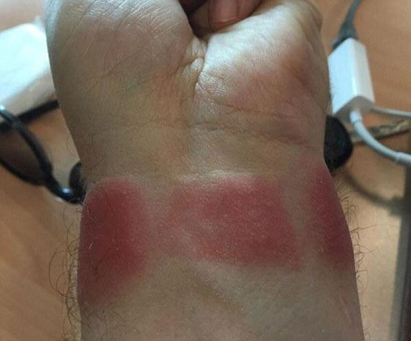 安妮说:“我已经戴这款手表3个月了。有一天,我在进行公路旅行时,佩戴苹果手表7个多小时后将其取下。当时我感觉手腕很痛,并看到有灼伤痕迹。这款手表温度很高,而且戴起来感觉不那么舒服。”