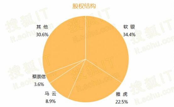 众所周知,目前以马云为首的创始人的团队,不是阿里集团的大股东。目前阿里集团的股权结构图如下:
