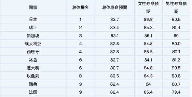 “日本人长寿”是人尽皆知的事。 事实上,日本人长寿也是又数据支撑的。 2018年,世界卫生组织调查数据显示:日本男性平均寿命为81岁,女性平均寿命为86岁。 以高龄蝉联世界冠军的日本,已经连续20多年勇夺第一了。