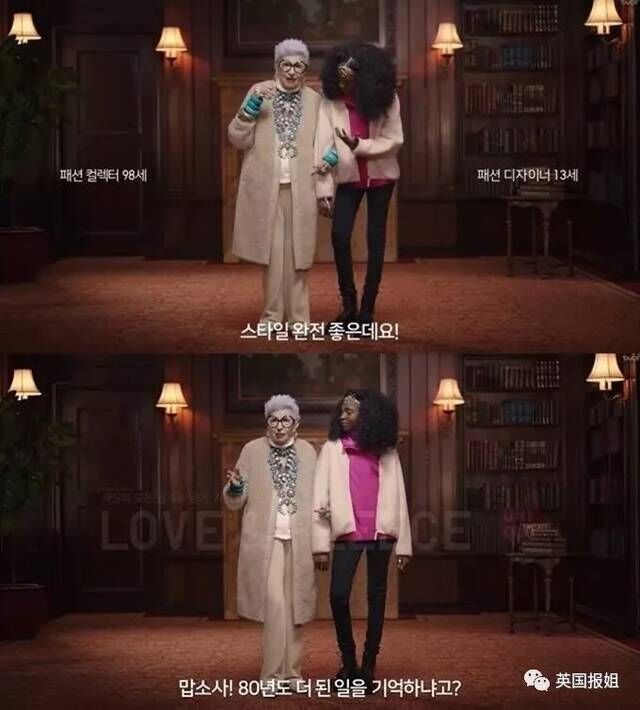出演这条视频的是时尚偶像艾瑞斯·阿普菲尔Iris Apfel,以及少女设计师 Kheris Rogers。98岁和老人和13岁孩子探讨时尚,无疑非常有话题性。