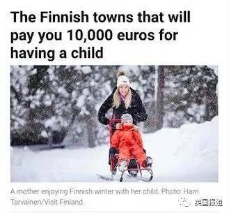 最近,关于“芬兰小镇将会给每个新生儿发10000欧元”的新闻在网上引发了热议: