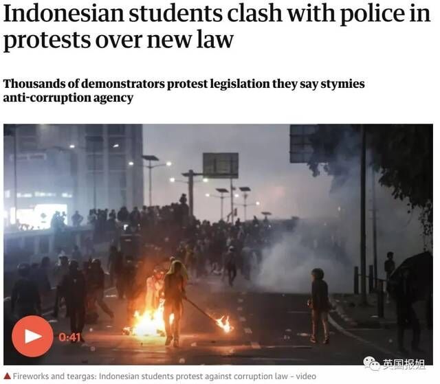 (图:印尼学生和警察对峙)