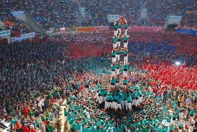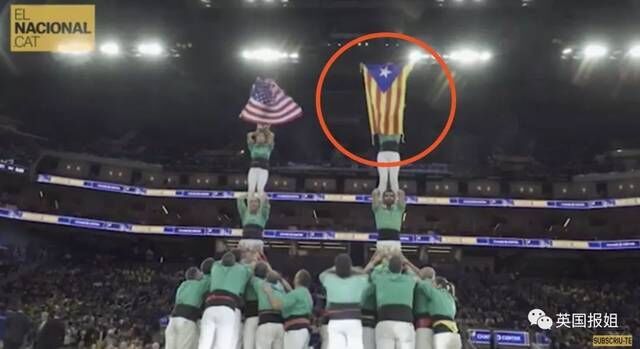 结果,在人塔搭完以后,运动员在最高处飘下一面旗帜,惹怒了所有西班牙人。