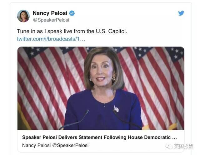 原来,美国国会终于开始了对川普的弹劾程序。美国众议院议长Nancy Pelosi今天宣布,将会开始对川普的罪刑进行调查。