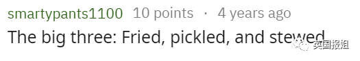 面对丰盛的食物原材料,美国人的处理方法之单调有目共睹,以至于早就有智慧网友总结了美国经典三大样:炸、腌、炖。